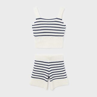-50%CONJ. SHORT TRICOT 023 CREMA-MARINO